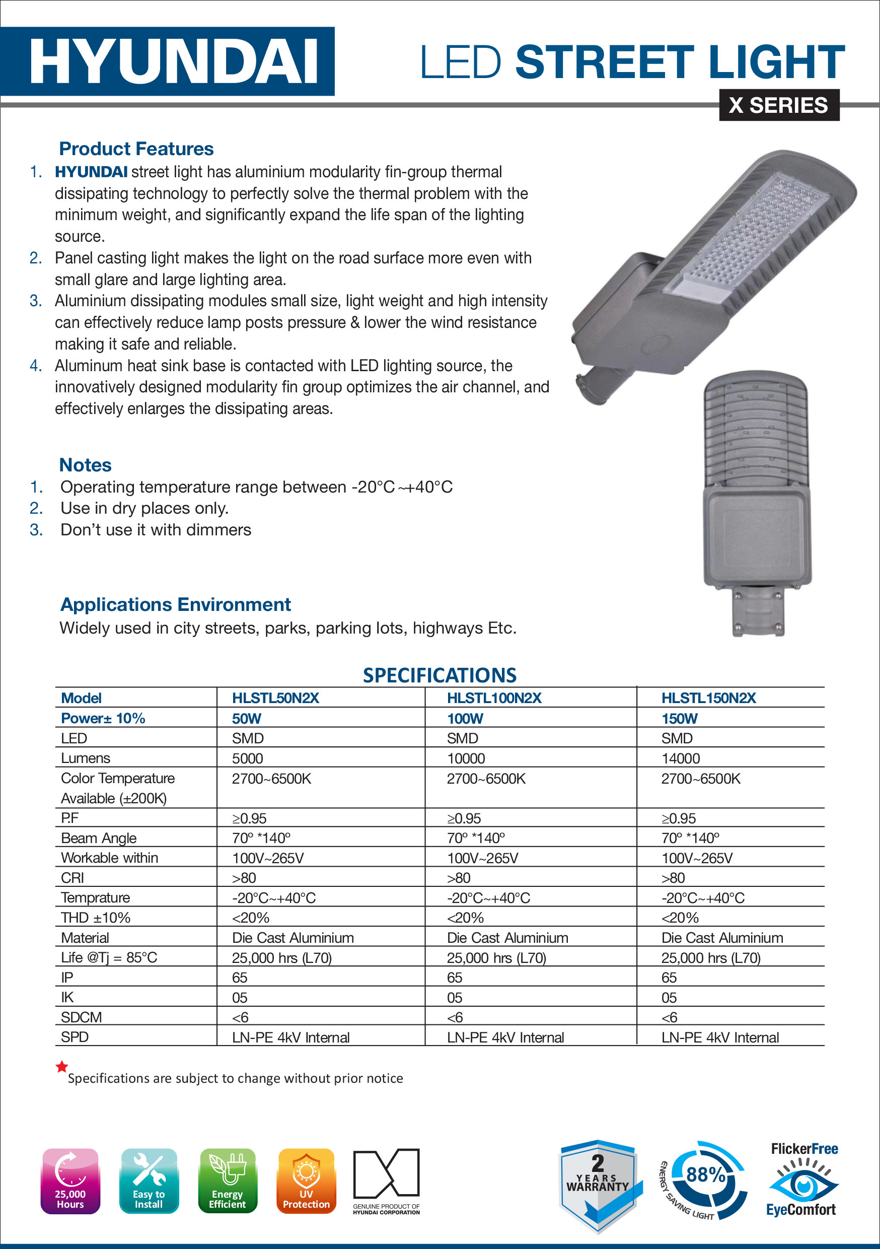 While a specific warranty duration is not listed on this flyer, Hyundai typically offers a warranty on its lighting products. For the exact warranty term for the X Series, please confirm with the supplier or official Hyundai documentation.